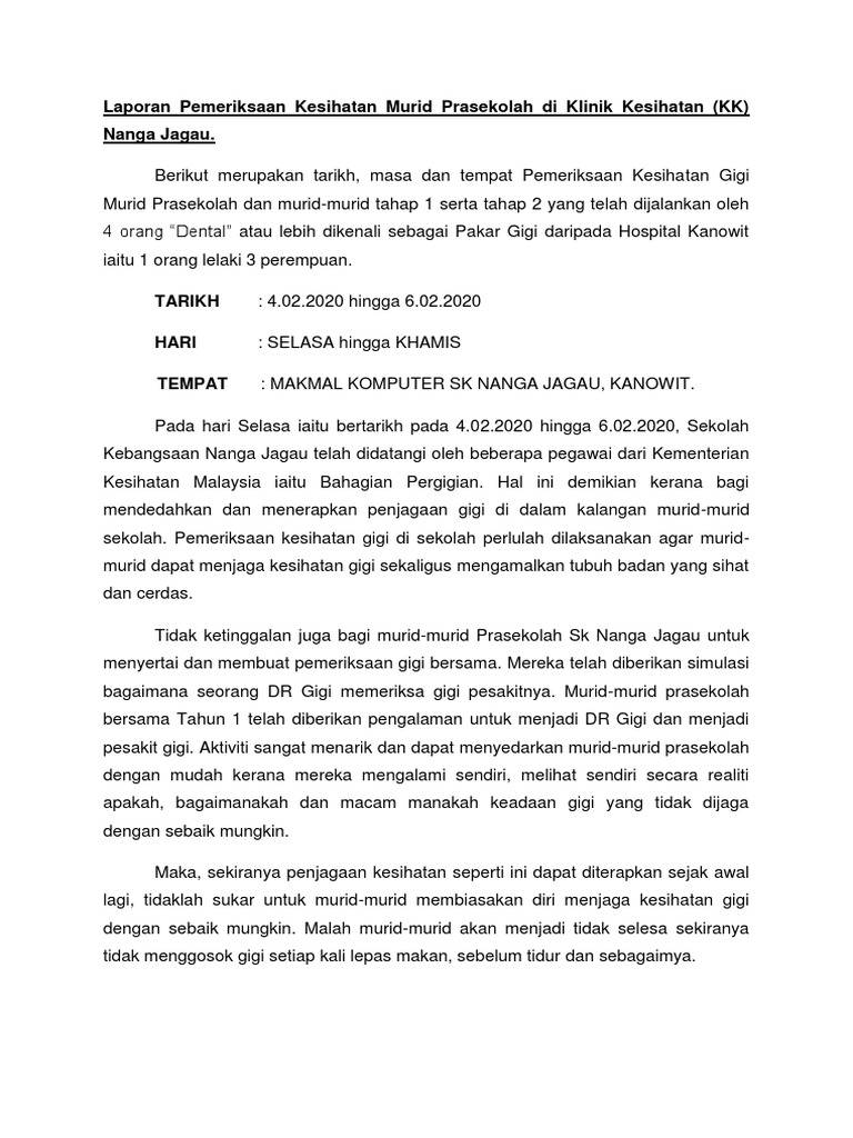 Laporan Pemeriksaan Kesihatan Murid Prasekolah Di Klinik Kesihatan Pdf